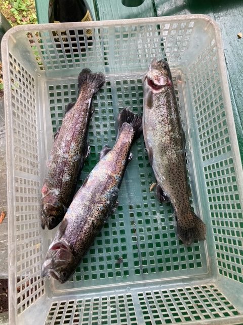 釣ったニジマスは、と~っても美味しいです。ニジマスを食べる機会は、少ないと思いますが、本当においしいです。